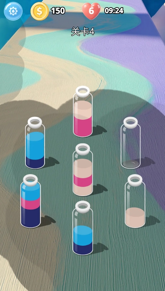 本作以色彩分离为核心玩法,模拟真实液体流动物理规则。玩家需通过有限次数的倾倒操作,将混装于试管中的多种颜料按色系完全分层,达成纯净排列目标。每关通关后解锁剧情碎片,逐步拼合粉色小章鱼与人类小女孩之间跨越物种的温情故事线。全作含超百道原创关卡,难度曲线平滑,视觉反馈细腻,兼具解谜成就感与叙事感染力。
