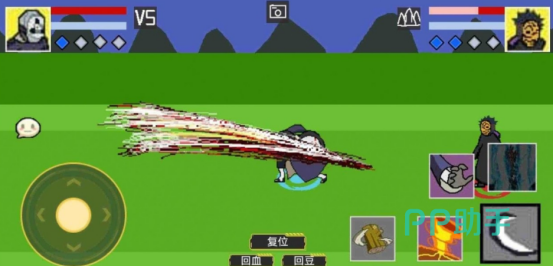 以经典火影忍者为背景,采用复古像素美术风格,复刻原作标志性场景与人物。玩家可操控秽土转生状态下的千手柱间等高人气角色,通过虚拟摇杆控制移动(左手区域),右侧按键触发普攻、替身术及奥义技能。战斗过程强调技能衔接与查克拉管理,关卡难度随进度阶梯式提升,兼顾怀旧体验与硬核操作需求。