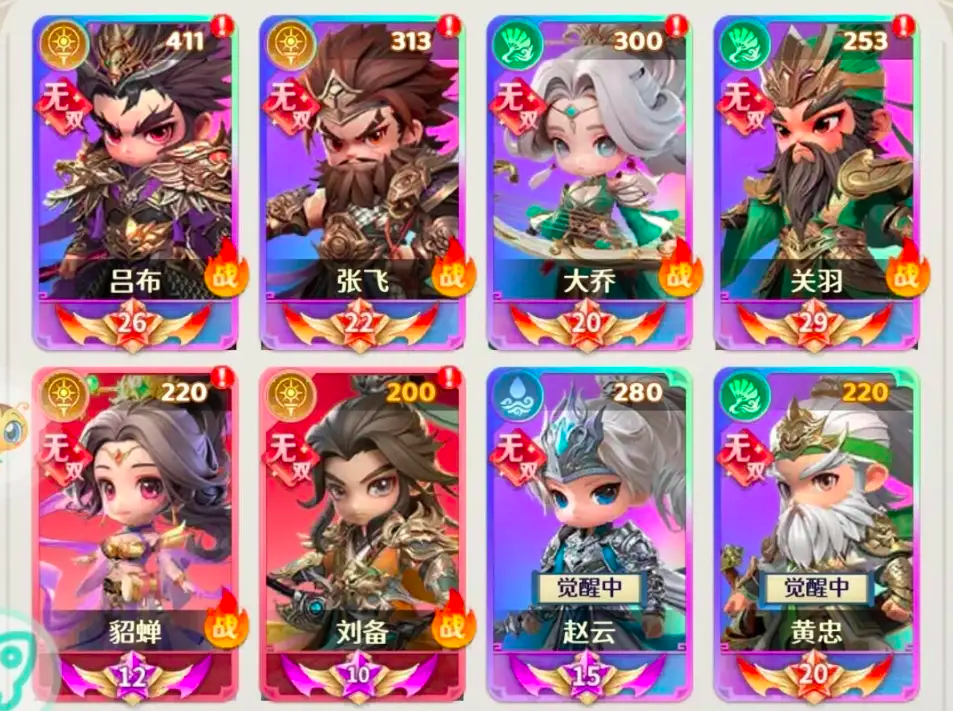 第一种方法完成每日签到,玩家完成每日签到后有机会获得关羽,张飞这些角色,完成每日签到的方法很简单,除了上线打卡外,需要挑战爬铜雀台任务,且爬塔层数越高,那么获得关羽、张飞的碎片卡牌概率也就越高,除此之外还可以解锁紫雷套装、青霜套装等各种装备外观,也能够帮助角色进行快速的成长,尤其是在前中期爬塔获取资源不失为一种好的办法,建议新手玩家可以多多尝试。