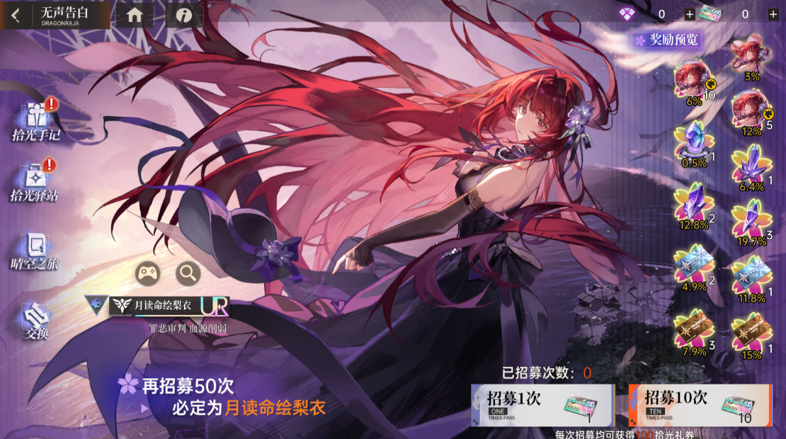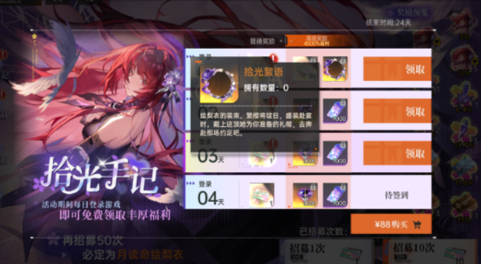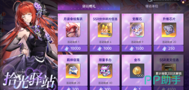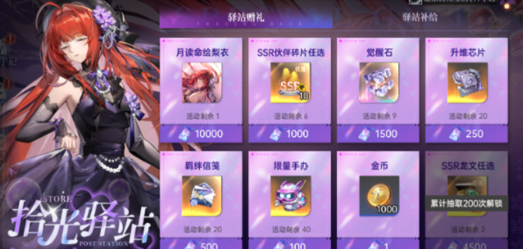 拾光驿站是这次活动的兑换商店,玩家可以用拾光礼券去换月读命绘梨衣的碎片,或者换其他一些稀有资源。如果抽卡运气不太好的话,通过这个途径慢慢攒碎片也是一个保底的办法,就是需要的时间会长一些。
