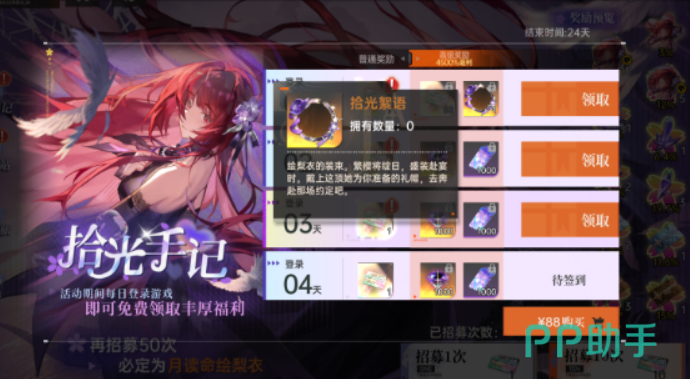 周年礼赞这个签到活动也值得关注,累计签到够次数的话可以免费领到弑罪路明非的新皮肤逆命之握,还有全新的七原罪伙伴傲慢。虽然这些奖励跟绘梨衣没有直接关系,但对于提升整体账号强度还是有帮助的。