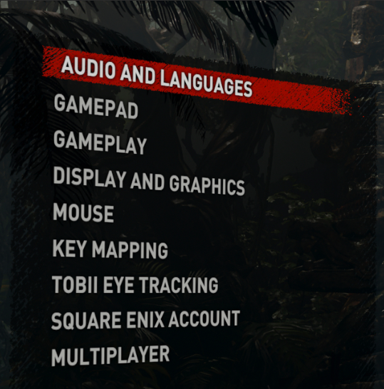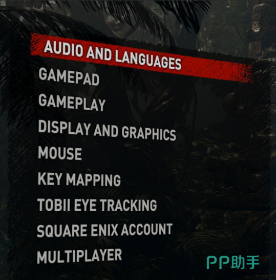 玩家在进入到游戏界面之后,可以在左侧的菜单当中看到“options”,这是菜单当中的“选择”按钮的意思,这个点击这个选项就可以进入到“audio and languages”(音频和语言),就可以进入到语言设定当中。
