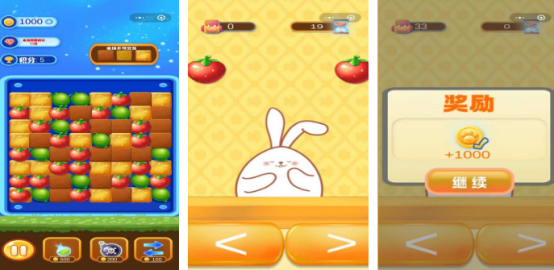 基于经典三消玩法为核心,也有丰富的关卡内容,讲述的就是兔小喜家族中的食物特别匮乏,无法满足更多家庭成员的需求,因此走出去寻找美食,想给自己的家庭成员去享受美食。合理滑动屏幕的方式,就能将各种特色美食带回到自己的背包中,每个关卡中也提供很多辅助道具,包括炸弹或者是交换位置等。