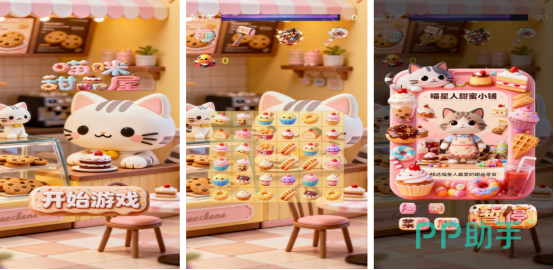 可爱又活灵活现的小猫咪,凭借着蠢萌的外观形态触动更多人的内心,这只小猫咪特别喜欢吃甜品零食,同样也是以以消除为主要核心,在精心设计的关卡内容中将会呈现出不同的甜品,有慕斯或者是奶油蛋糕等等。这些甜品都错综复杂地摆放在那里,通过合理滑动的方式就能将三个或多个相同的甜品放在一起快快速消除,只要将关卡中所有的图案全部消除后即可顺利闯关。