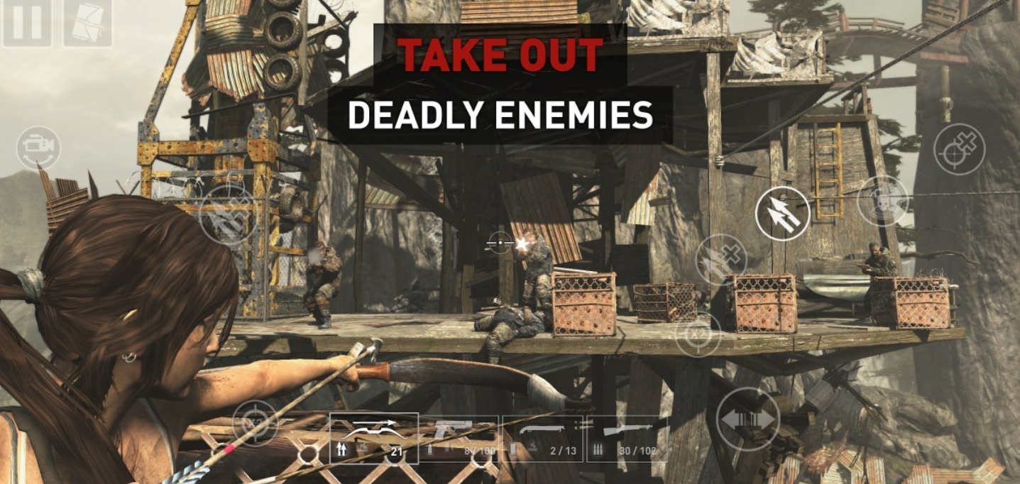 本作为《古墓丽影9》(即重启之作《Tomb Raider》)的移动端专属版本,首次在手机平台实现越肩视角实时渲染。依托虚幻四引擎底层支持,实现动态天气系统、布料物理模拟与高精度材质反射,大幅提升环境真实感。战斗模块支持三段式武器切换(弓箭/手枪/步枪),每种武器具备独立装填逻辑与后坐力反馈。剧情采用分章节推进模式,穿插回忆闪回与生存日志,完整呈现劳拉从求生者到探险家的蜕变过程。任务目标明确,引导机制隐性,鼓励自主探索与路径选择。