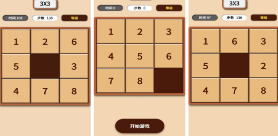 想锻炼自己的思维能力和智慧,那么此游戏就是最佳选择,可以在3×3或者是4×4等不同的难度中正确挑选,比如在3×3的网格中,将会看到一到八的数字。其中还有一个空白的方块,通过合理滑动屏幕的方式,就能将这些数字按照正确的顺序连接在一起,在最上方也会看到自己使用的时间或者是步数。