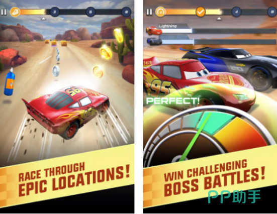本作深度还原皮克斯原版美术设定,所有赛车均完成拟人化建模,表情生动、动作流畅。赛道设计涵盖沙漠公路、海岸弯道、城市立交等多种地形,过弯操作强调节奏感与预判能力。玩家需通过精准漂移、氮气释放与路线选择,在高速对抗中争夺领先位置,同时积累金币与成就奖励,持续升级车辆性能。