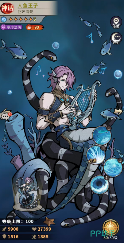 在《幻灵召唤师》的水属性阵容构建中,人鱼王子作为高适配性的蛇灵角色,正逐渐成为冰控体系的核心选择。其机制设计深度围绕“寒冷—冰冻”状态链展开,尤其在法术伤害与群体控制双维度上展现出独特战术价值。