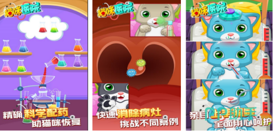 可爱的猫咪,成为了一名白衣天使,主要的任务就是为更多生病的小猫咪治疗疾病。这些猫咪的身体状况都完全不同,有的可能只是普通的感冒发烧而已,有的猫咪可能身体状况特别糟糕,大家要根据小猫咪的身体状况或者是不同的病情,巧妙治疗,而且还要制定出相应的治疗计划,有必要时也需要立即为生病的小猫咪开启手术。