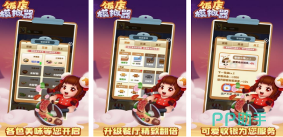 以经营饭店为特色,各种特色美味食物等待你前来开启,通过升级餐厅的方式,让精致翻倍,培养可爱的收银员或者服务周到的服务员,这样才能够让更多顾客的需求得以满足。玩家最初开设餐厅仅只是路边小摊,随着时间推移,不断的装修,升级设备,有机会打造成为五星级米其林餐厅,通过装修学习菜肴的方式,解锁更多品类,吸引到更多顾客。