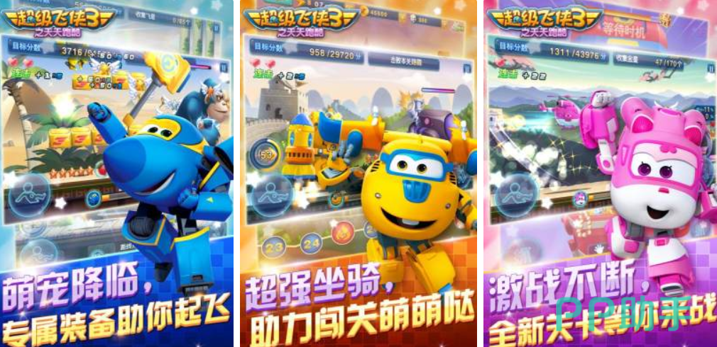 这款游戏和玩家们经常游玩的跑酷玩法类似,与之不同的是,它拥有着变身功能以及必杀技的功能,玩家们在期间不仅能够在其中收集金币,冲破阻碍,还能够享受变身带来的不一样的游玩体验,而玩家们熟悉的超级飞侠形象也都将一一出现在游戏之中,让玩家们与他们一起共同跑酷,躲避障碍。