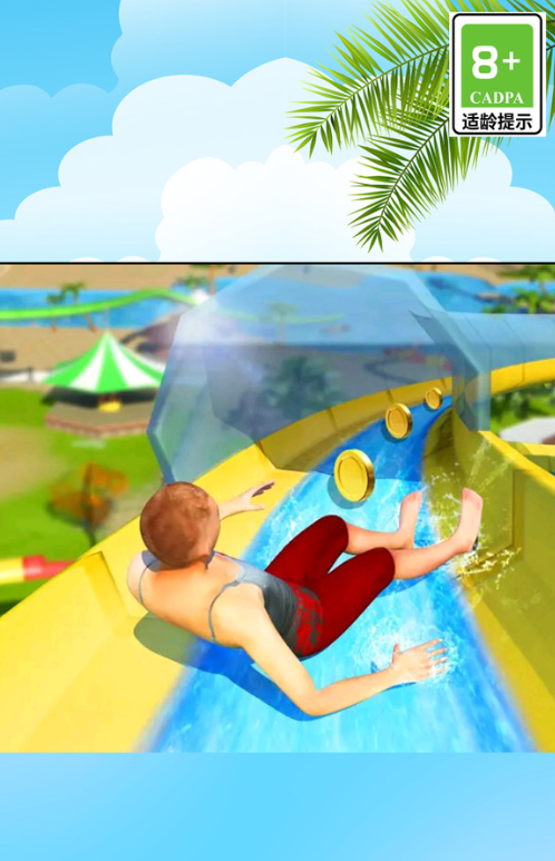 此款作品把水上乐园的快乐感和跑酷玩法做了融合,游戏中玩家可以操控自己的角色,在各式各样的水上设施中奔跑。像滑梯和喷泉景观都可以成为我们的赛场,每一个关卡都搭配了不同的水上场景和不同类型的障碍物。想要顺利通关,就需要靠玩家自己熟练的技巧和反应速度,需要躲开各种阻碍,又要抓住合适的机会。