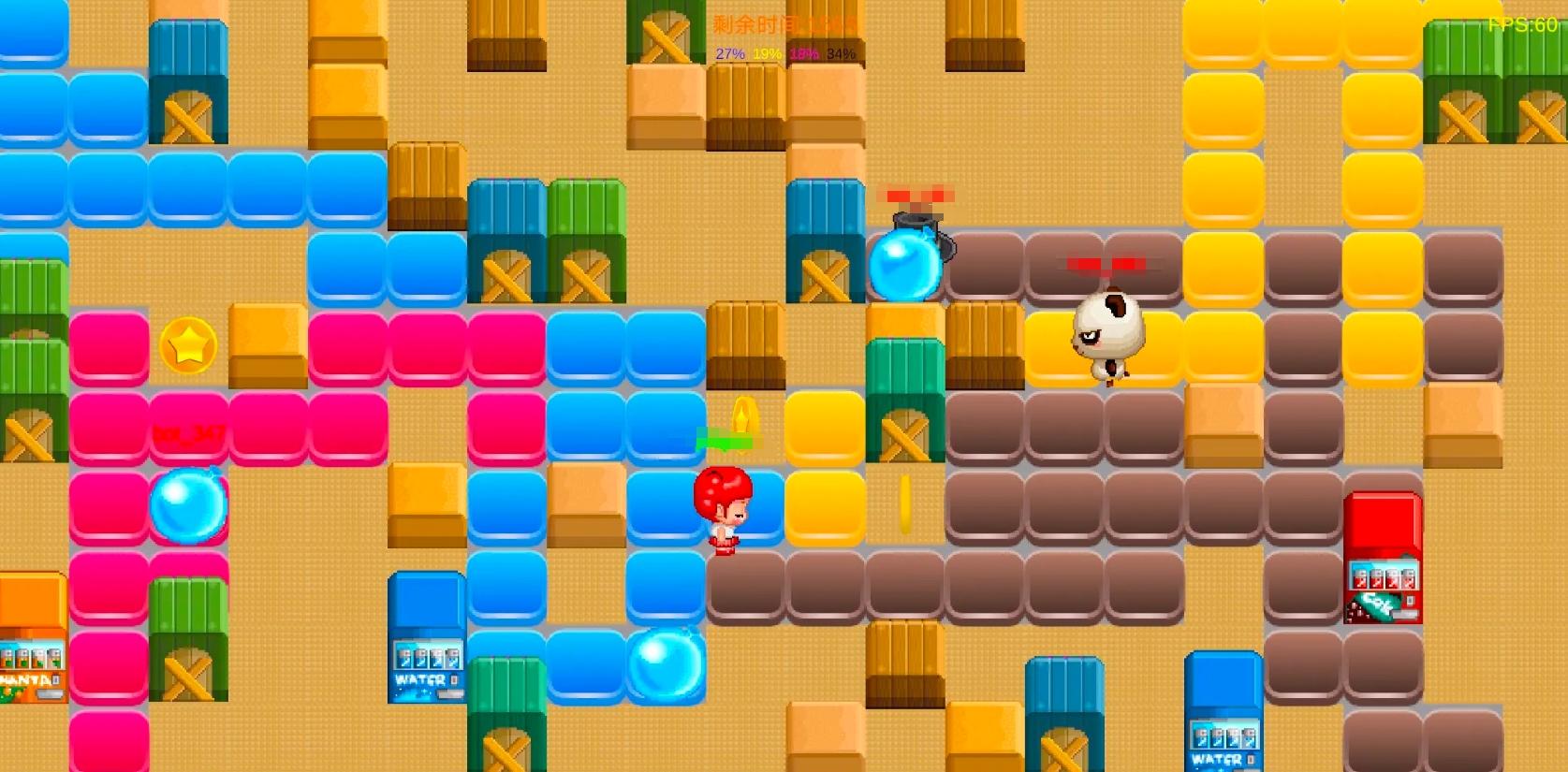 同样是用水泡替代了炸弹的作品,在模式玩法上也与传统炸弹人一致。参与对战的玩家会出生在地图的不同位置,周边也有各种能被水泡炸毁的障碍物,击毁它们也有概率能拿到增强道具,让自己的水泡变得更具威力。而且此作的操控方式特别的简单,角色控制起来也有着极为不错的顺滑感,能让各位轻松作出各种极限操作,在不断爆开的水泡中完成躲避,并用自己的策略淘汰掉全部的对手。