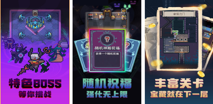 在这款转生手游中大家都会成为像素风格的小勇者,使用特殊的战斗方式在地下城空间中厮杀更有快感,有着极为丰富的随机关卡和各种肉鸽技能,随机的祝福buff加持也给人一种前所未有的新鲜感,无上限的强化机制提供的爽快感也更为有趣,多样关卡和超多宝藏纷至沓来期待着大家探索,各位小勇者们快进入本作感受地下城冒险之旅吧。
