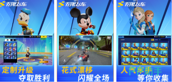 全新推送的飞车类型采用迪士尼ip,公主与米奇等经典形象超过30多个,每个角色都有特殊技能,比如在驾驶车辆时瞬间释放加速或者护盾来干扰对手,通过升级角色属性来提升相应能力。游戏提供单人模式,有主线任务,可任意探索,还可选择比较耐玩的多人模式中,支持本地在线联机,最多可容纳4位玩家共同参与。