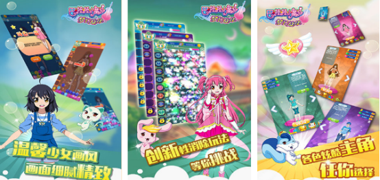 正版授权的动画ip手游,以梦幻消除创意为特色,足够温暖的少女画风,整体细腻又精致,色彩超级鲜明,有超级梦幻的视听效果,还有精致画面,音效非常动感,有五线谱、魔法光效等多种核心特色,营造出沉浸式魔法氛围。完整的核心机制,支持水平、垂直等对角方向进行消除,图标会跟随音乐旋律而变化,增强具体的操作反馈。