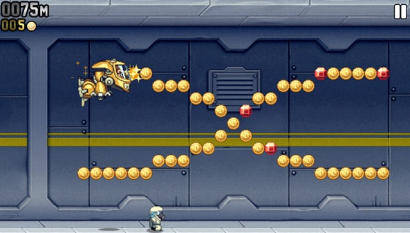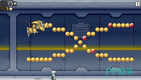 不需要联网就可以玩这款游戏,点开就可以直接进入,游戏中我们要扮演一个偶然拿到喷射装备的角色。在不断向前推进的关卡中躲开各种障碍和敌人的子弹,场景设计的清爽利落,操作起来也比较简单,一根手指上下滑动就可以操控角色移动。游戏中还准备了好几种不同的喷射装置,每一种推力大小和反应速度都不同,而且分数会实时刷新,还能保存本地的最高记录。