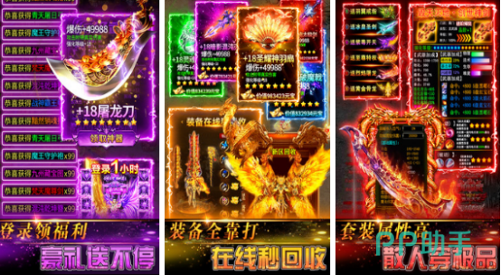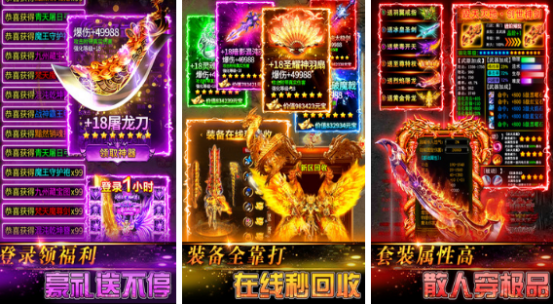 热门复古打金模式,热血跨服沙城争霸及boss抢夺战争应有尽有,节奏极快,剧情不邋遢,足够逼真的打斗效果,秉承经典的同时融入创新特色福利,带你再次回味精彩传奇之旅。独创的合成系统,两件相同装备可合成进阶,融合模式为让装备战斗力更强,永久保值。