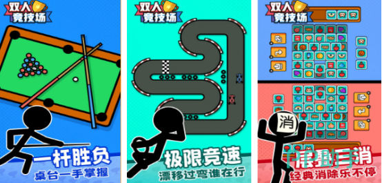 亮点颇多上手简单容易,娱乐聚会情侣约会时来一局,轻松缓解尴尬无聊的氛围,超过30多种不同小游戏设定,有经典的乒乓球,飞行棋,还有当前全新推送的创意玩法,有坦克对决,台球,每种游戏都有独特的规则和挑战。采用极其简单的卡通风格,界面超级清爽,玩家需要有灵活的手眼协调能力。