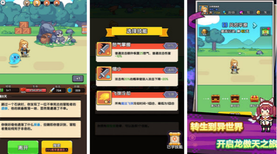 集合异世界冒险与角色养成的单机像素手游,成为世界龙傲天,各类装备都能免费选择,你的命运也由你来决定,有完整随机肉鸽元素,每次冒险都是新的开始,即便在战斗时突然间死亡,这也并不会导致失去战斗的机会,而是会让你变得更加强大,死亡意味着会重新开始。