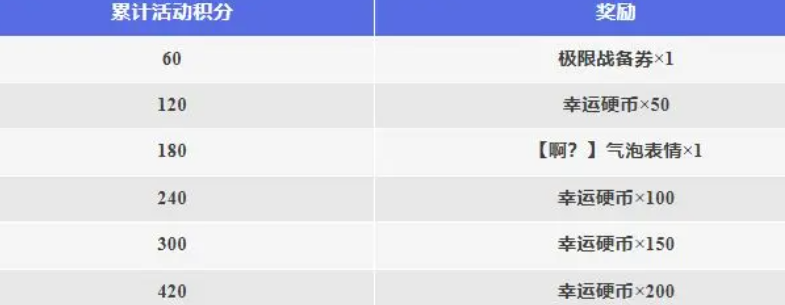 活动任务涵盖登录、累计淘汰2名玩家等轻量级操作,完成后将同步发放肠宝币、幸运硬币及活动积分。积分可用于兑换高价值道具:累计达60分可领取极限战备券×1,该道具适用于摸金派对极限难度模式,在整备阶段点击使用,可自主选择适配的战备配置;积满120分可获得幸运硬币×50。