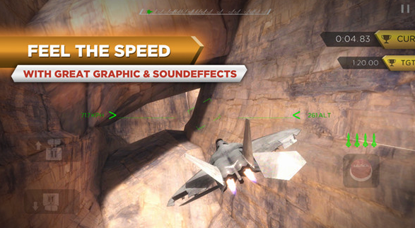 游戏里的场景做的特别真实,而且变化多样,跟着战机穿梭就可以体验上天入地的感觉,还能看到各种不同的风景。战机的造型线条流畅又带有硬朗感,帅气的样子完全展现了出来,玩的时候就像真的坐在驾驶舱里一样,飞行的爽快感直接拉满。我们只需要轻轻晃手机,就可以控制战机上下左右移动,游戏里有五架完全不同的强力战机,每一架的性能都不一样,还有超过了20个独立的关卡。每一关都有不一样的挑战,画面和音效搭配起来也比较符合实际。