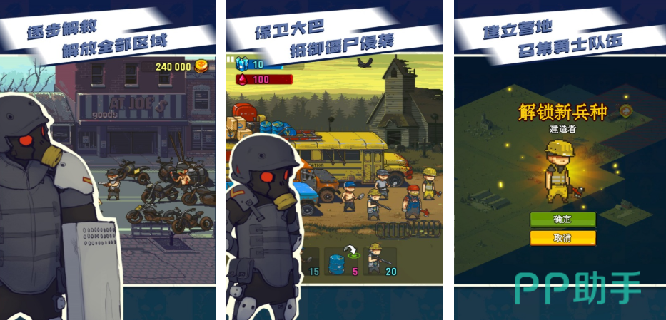 而这一款像素游戏则是以射击玩法为主,在游戏中,玩家们需要保卫好自己的大巴,让饥饿的丧尸远离自己,最好能够逃脱到营地之中,保卫自身的安全,到后期玩家们可以直接召集出独属于自己的队伍,让他们去作战消灭丧尸,打击丧尸的方法很多,玩家们可以自配备武器,既可以射杀,也可以进行焚烧,总之,一切都只为消灭所有可见的僵尸。