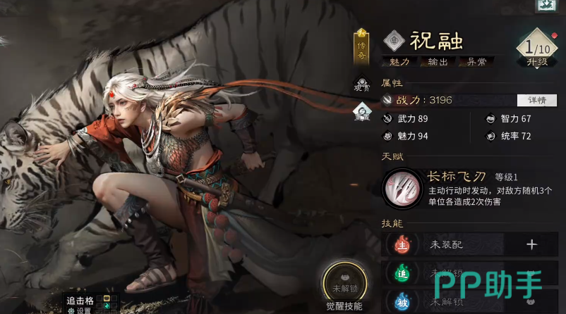 祝融作为游戏中极具辨识度的传奇武将,定位为高爆发单体+群体双修型输出核心。初始基础战力即达3000以上,随等级提升持续强化。除战力优势外,其魅力属性亦属阵营前列。战斗中,祝融首阶天赋“长标飞刃”可触发主动进攻机制——每次普攻将对敌方三名目标各造成两次独立伤害,形成高频压制节奏,是前期快速清场的关键角色。