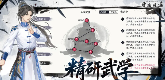 开局挑选职业是主要的选择题,玄门,刀客,毒师,三大流派各有各的优势,在选择好门派之后,就可以全身心的投入到其中。玩家可以选择跟随主线剧情走,也可以甩开任务,然后进入到野区去刷怪,甚至一个选择就可以改变整个江湖的走向。这种多结局的设定,让玩家在闯荡的过程中就会觉得有一些截然不同。战斗的核心就在于武学心法的搭配,每一种职业都可以学习多种武学以及门派绝学。
