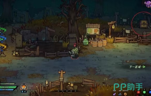 黑森林地图中的第2个宝箱位置就需要玩家来到第2个房间中,并且与对应的npc进行一系列的对话后,才能够发现右边带叉号的指示牌,需要找到工具打破箱子,才能够继续往前探索,发现宝箱。这个宝箱在寻找时涉及到了人物之间的交流与互动,会更加有趣。