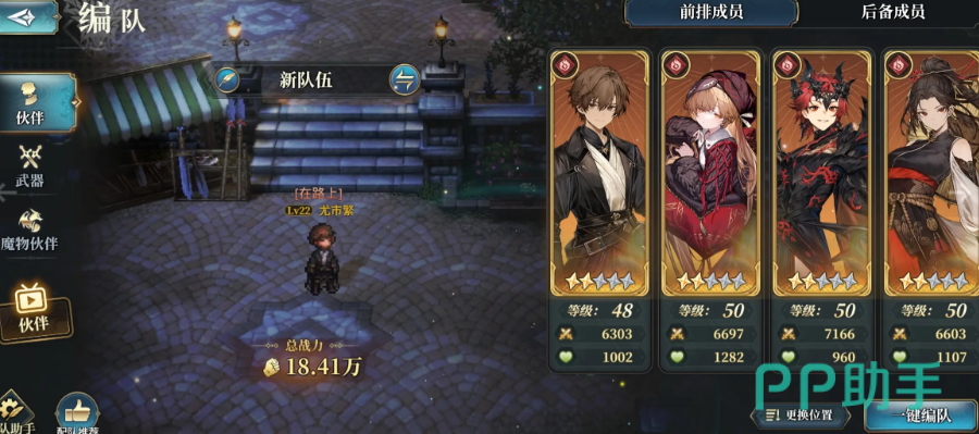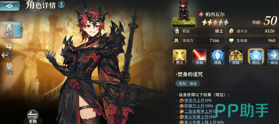 主要的C位角色,可以使用帕西瓦尔,作为游戏内的骑士单位,拥有火属性的输出能力,可以通过自身强化,来获得攻击力上线以及奥义伤害增加,并且其初始的攻击输出并不低,虽然只是五星卡牌,但是其升到二星时,就已经有不错的爆发能力了。