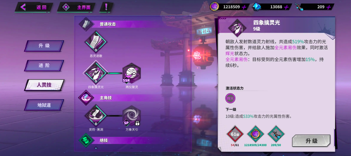 最后我再来说一下灵将技能——”金风玉露“,在15秒内可增伤35%,如果玩家资源比较丰富的话,可以将它提升两个等级,就能达到40%的增伤,这样的增伤效果还是非常不错的。