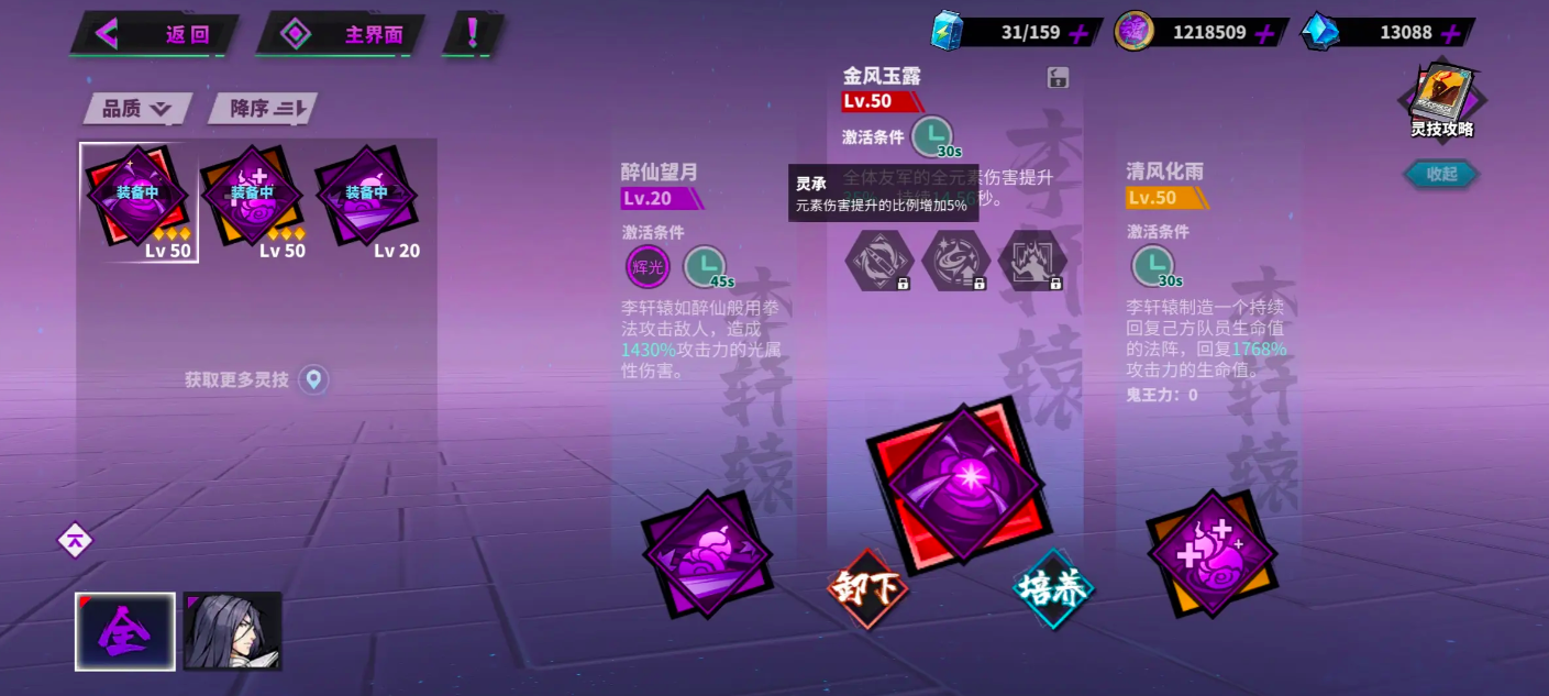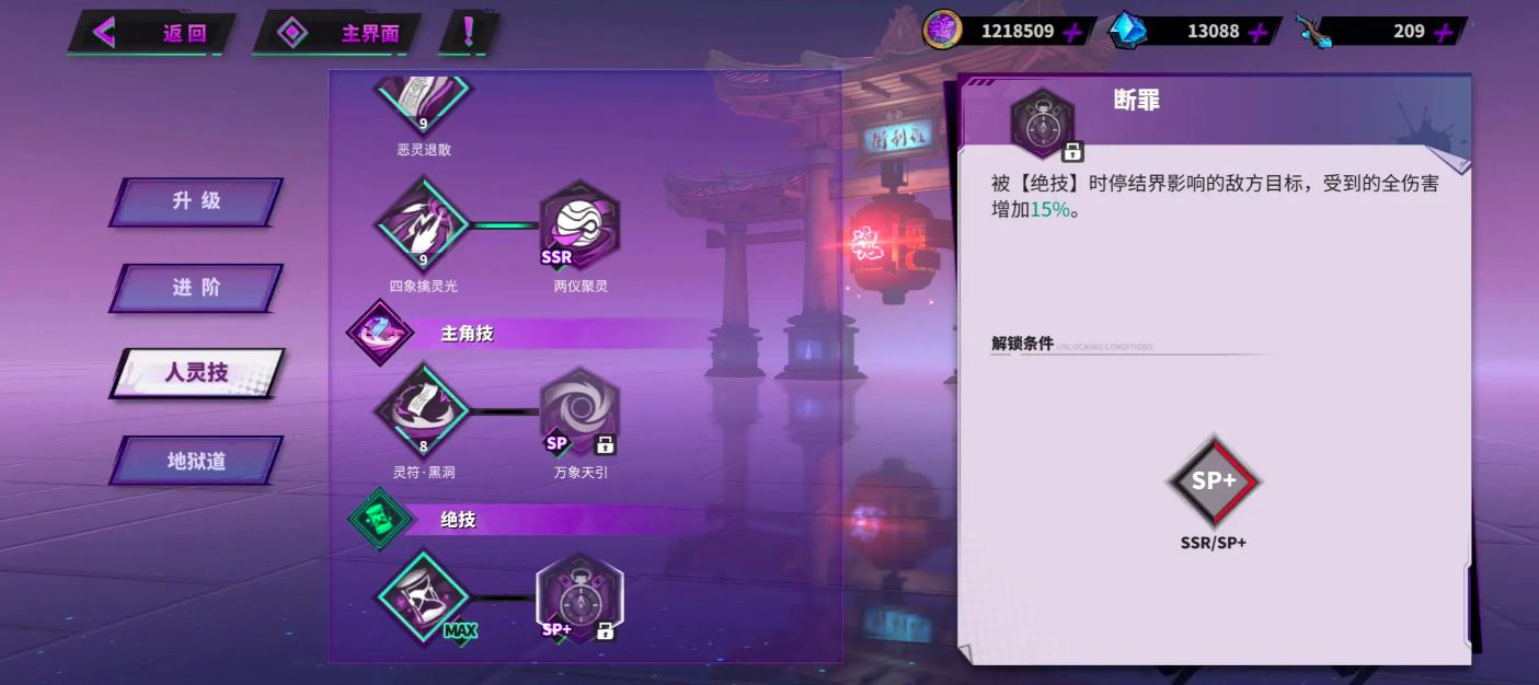 绝技——”断罪“,被绝技时停结界影响的敌方目标,受到的全伤害增加15%。除了这种基本的学习绝技后,当夏玲融合了葫芦变作sp夏玲,也就是清风夏玲,在绝地方在绝地方也会有着在绝技方面会有着更强的突出表现,玩家可以直接解锁万象天移这一主角技能和逆转时间的绝技,至今能够对敌方发起控场,延缓敌方的移动速度,从而为输出型的队友提供更加稳定的输出空间。