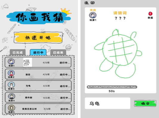 没有绘画基础,照样也可以玩的一款创意游戏,其中一人根据词语画画,另外一个人凭借想象力去解读。在经过循环之后,那自然就会有想不到的结果。自带趣味反馈,还有积分排名,孩子画的很抽象,爸妈猜的很离谱都没有关系,主要是整个过程中笑声连连,这要比输赢更加的重要,还能慢慢的锻炼表达能力。
