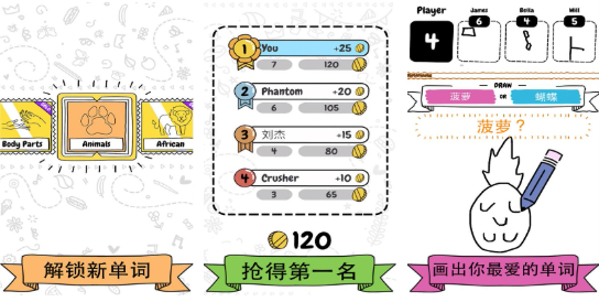专注于亲子默契的绘画猜歌游戏,题材包括日常用品,简单英语单词以及动物。在限定的时间内精准的勾勒关键的特征,就可以迅速的通关。画笔工具很丰富,孩子就可以自由的发挥,爸妈也可以配合一起去猜测答案。整个游戏的节奏很轻快,一点都不会费脑子,大家在玩耍的过程中就可以积累词汇,适合碎片化的时间互动。