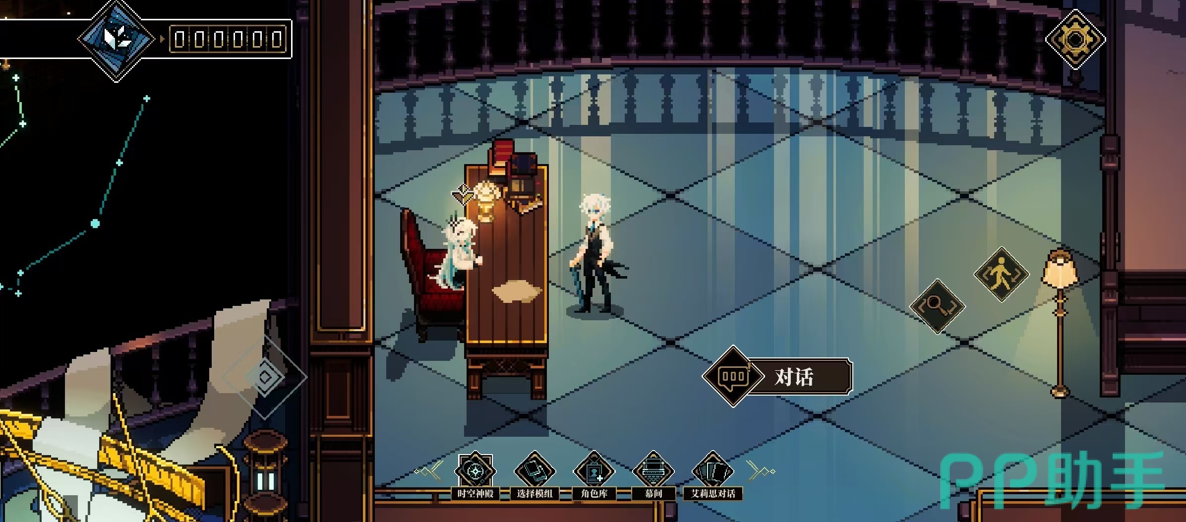 玩家身份设定为图书馆管理员,需在不同时空断层间执行修复任务。前台NPC艾米是关键交互节点,负责分发主线委托、激活新模组权限,并通过对话互动赋予玩家特质属性。每个模组即一个自洽单元剧,涵盖探索、对话、检定战斗等标准化流程,全程依赖骰子判定系统驱动。图书馆内置存档快照与时间回溯机制,允许玩家在关键分歧点反复尝试,规避因单次检定失败导致的不可逆结局,显著提升叙事容错率。