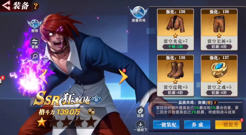 游戏前期节奏平缓,可操作角色有限,建议优先聚焦2–3名主力角色进行定向培养。通过实战积累,逐步明确自身偏好——例如偏好高爆发输出、持续压制或团队承伤等不同定位。随着角色池扩充,需同步推进新成员的基础成长,而装备配置正是差异化强化的关键路径。输出型角色应优先装配提升攻击力的部件,辅以暴击率、暴击伤害类增益,从而最大化单次技能或普攻的瞬时杀伤;若侧重连招节奏与持续压制,则可叠加攻击速度与技能冷却缩减属性,进一步优化输出循环效率。
