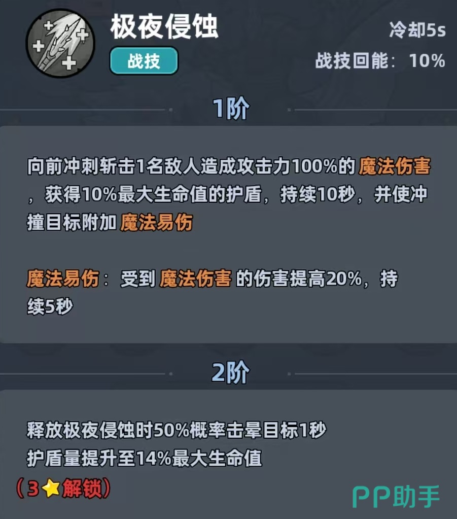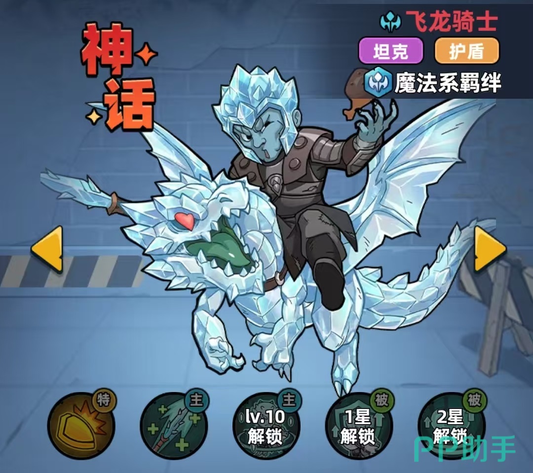 飞龙骑士属于魔法系羁绊,职业定位为前排坦克。在当前版本环境中,稳定承伤能力是队伍存续的基础前提,而飞龙骑士正是凭借兼具生存强化与团队增益的复合型技能设计,成为魔法输出体系中不可替代的核心前排。其主动技能具备三重战术价值:向前突进并命中单体目标,造成魔法伤害;生成相当于自身10%最大生命值的护盾;同时为目标施加“魔法易伤”效果,使其后续所受魔法伤害提升。该机制天然契合以忍术大师、丸子头等高爆发魔法C位为核心的输出阵型,实现“抗伤+增伤”双重赋能。