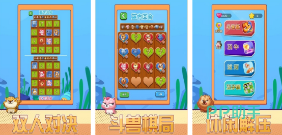 一款专注双人策略对抗的轻量级益智应用,核心玩法包含传统斗兽棋及五子棋双模式。斗兽棋部分严格复刻动物相克逻辑:鼠胜象、猫胜鼠、狗胜猫……依此类推,最终目标为将对方兽棋全部驱逐出营地或占领其大本营。开局布局灵活,行棋过程兼具随机性与可控性,考验玩家对规则理解与临场应变能力。
