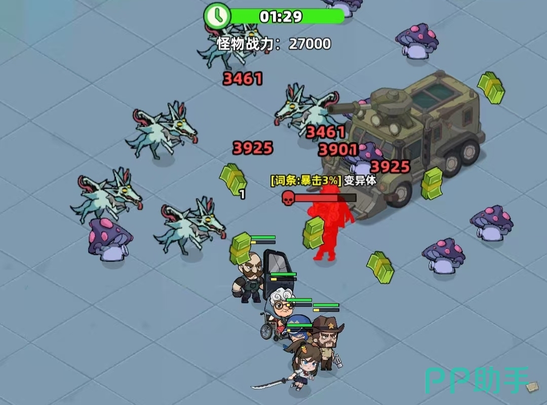 游戏有着极为方便的玩法,上手难度也不高,战斗中所需的操作也很简单,玩家们只需移动中间的转盘,便能操控小队成员们移动,等玩家停下对轮盘的操控后,若周围存在着敌人,小队成员们会自动地朝敌人发动攻击,并会在能量满后自行去进行技能的释放,全程无需玩家们进行任何过于复杂的操作,小队成员们会将一切都解决。
