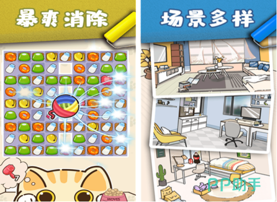 本作以猫咪养成为核心,结合轻度三消+放置经营玩法。玩家可通过交换相邻方块,达成横纵方向三个及以上相同图案完成消除,从而获取资源建设猫舍、解锁新猫种。游戏内置丰富剧情线,宿舍场景多样,家具与装饰自由搭配,营造温馨治愈的沉浸式猫咪生活氛围。