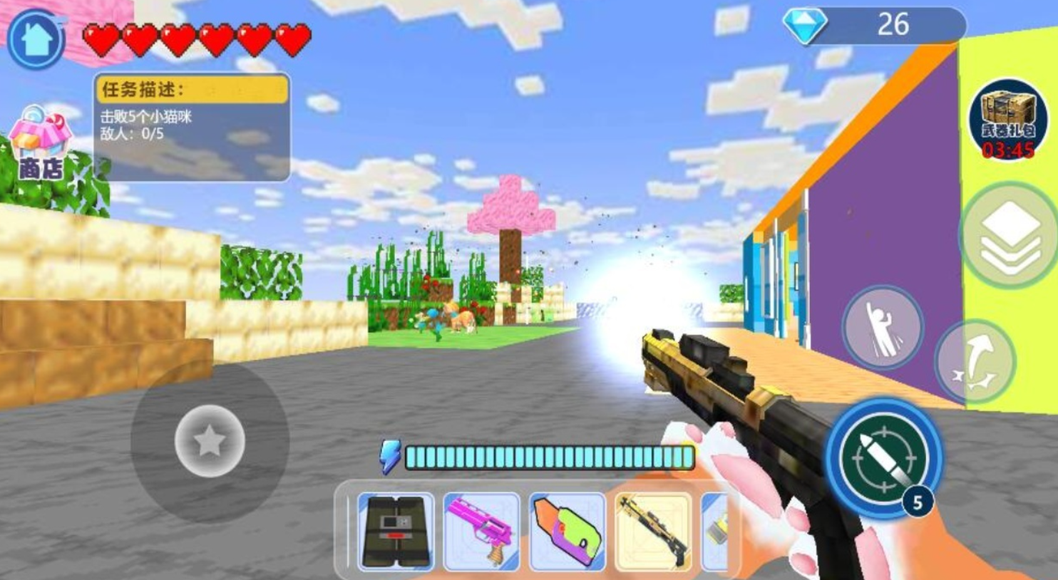 这是款加入了沙盒性质的像素立体风格FPS手游,可使用多样武器进行真人实时PK比赛,武器系统和辅助装备超多带来的枪战对抗理念更爽,化身战地指挥官的角色参与FPS对战的过程刺激性十足,各种远程或者近战武器的加持增加了战斗快感,地图设定立体像素有一种进入MC世界公平枪战对抗的感觉。