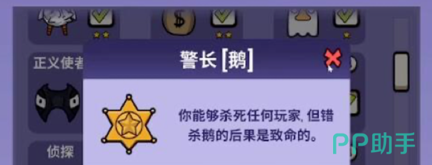 比如在鹅阵营里面警长就是比较受欢迎的一个身份,警长虽然不属于鸭子阵营的角色但是也是刀人,且是可以选择任意玩家作为目标,但是误杀了同阵营玩家的话,直接就会一起被淘汰了,如果刀掉的是其他两个阵营的玩家则可以直接淘汰目标,所以警长可以主动出击清除敌对阵营的角色,而且技能后期在集合后大家可以再次使用技能中间需要间隔20秒,想要用这个身份得到胜利的话,发布的所有任务都需要完成,或者是淘汰所有鸭子也可以,这里大家一定要切记警长不能刀错对象,如果是新手对阵营还比较陌生建议是熟悉对局之后再体验。
