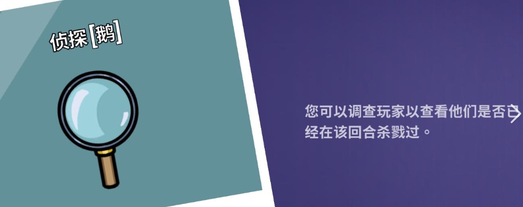 侦探:具备单次目标调查权限,可验证指定玩家是否曾使用过击倒类技能。该技能不可重复作用于同一对象,因此务必用于高嫌疑目标。获取结果后需结合上下文判断是否公开,且标记效果随视野丢失而失效,强调跟踪时效性与信息管理能力,是验证型推理的核心辅助手段。