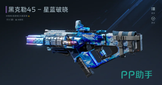 黑克勒45星蓝破晓这把枪械对于玩家而言,就等同于是一个较好的辅助力,当然除此之外,还可以获得限定头像框。这把限定枪之所以会让大家期待,主要是拥有出色的颜值。枪的表面还是以张杰演唱会的蓝白渐变作为核心,枪身伴随着光线的环境,还会折射出流动星光。