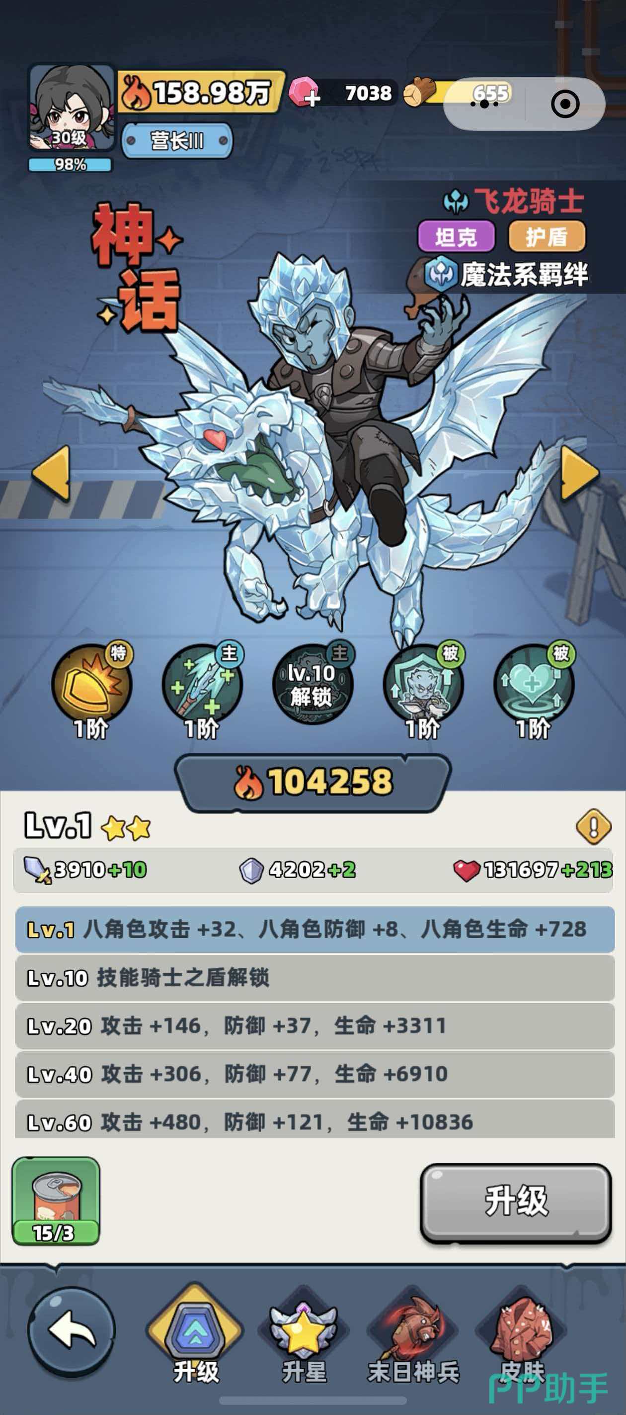 以上就是生存33天飞龙骑士的详细介绍了,飞龙骑士可以说是一个对平民玩家比较友好的角色了,抽取难度低,作为坦克型的英雄,飞龙骑士自身的能力也非常的不从,没有高品阶护盾英雄的话,飞龙骑士非常适合过渡使用。