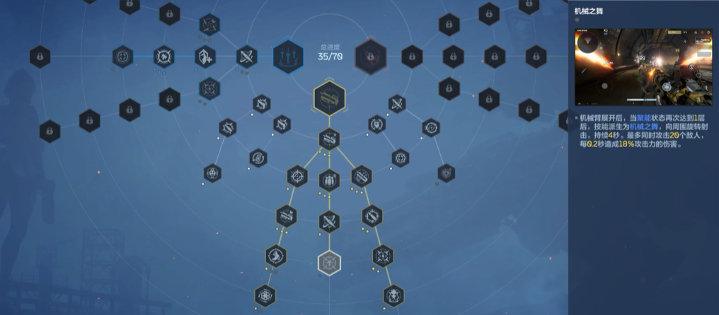重机枪模式下,玩家首先需要选择更适合该模式的武器,这里建议选择冲锋枪、突击步枪以及机枪等火力型武器,重机枪模式在使用技能以后,机械臂的重机枪会有自动开火的功能,且还是朝着对手准星开火哦,这种技能可以让玩家在战斗中相当于又多了2把枪械,这种技能模式比较适合大家在战斗时对着敌人进行集火输出,前期使用该技能打boss的时候效果可是杠杠的,重机枪模式在加点的时候,优先给机械威能、远距离伤害、疯狂射击、机械之舞以及绚烂烟火等效果增加点数,这样能够增加重机枪模式的伤害。
