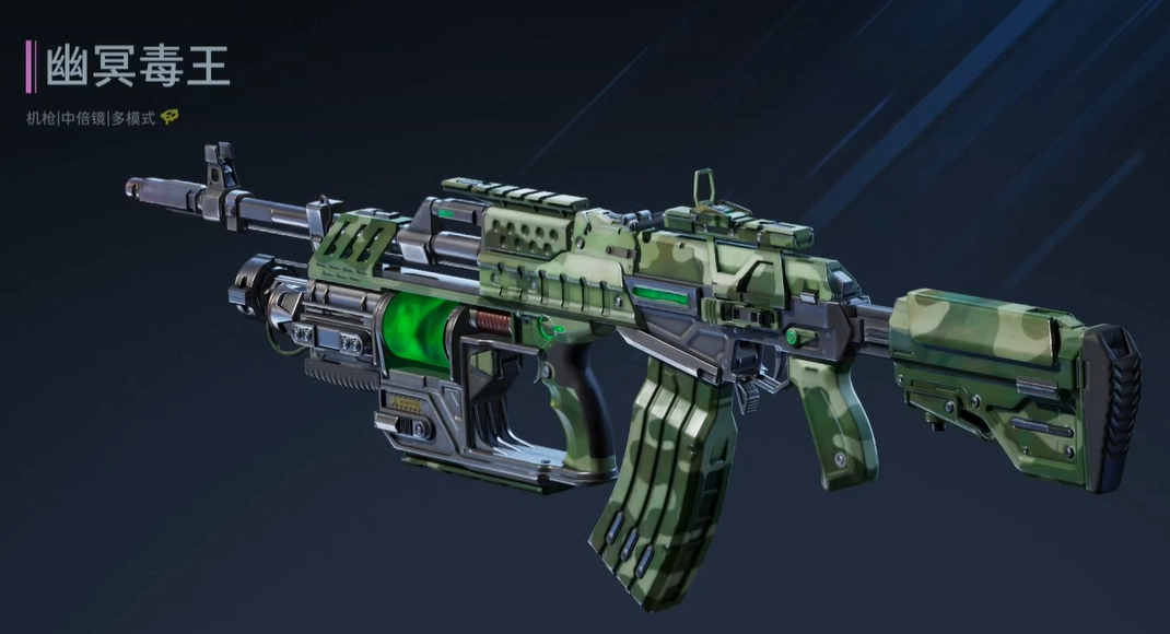然后是机枪这个方向的玩法。机枪流派的特点就是火力覆盖密集,适合中距离持续压制。推荐使用幽冥毒王这把机枪,搭配上暗夜之殇手枪做副武器。这把机枪输出能力强,而且自带毒素效果,打boss的时候能额外叠加一层debuff。手枪主要是用来补充近战能力的,因为机枪在近距离其实不太灵活。不过用机枪要注意一个问题,就是后坐力比较明显,连续射击的时候准星会往上飘,需要手动压一下枪口,不然很容易打空。但只要掌握了节奏,这套流派的输出是真的稳定。