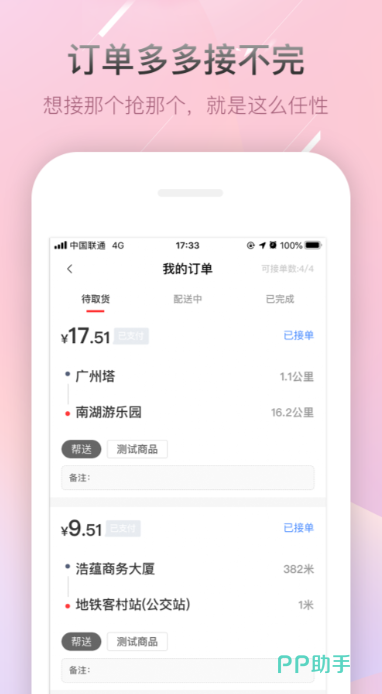 该应用定位于个性化任务型运力调度平台,服务对象为承接非标需求的个体配送从业者。区别于传统商超订单模式,其核心业务围绕“代买、代送、代取”等弹性服务展开,订单来源广泛且场景多样,例如“为写字楼用户采购现制咖啡”、“跨区域文件递送”、“协助领取证件材料”等。系统不绑定固定商户,而是以需求方发布的具体任务为单位进行智能派单。