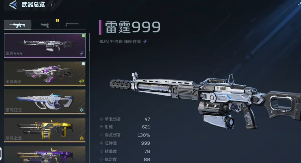 用雷霆999搭配雷霆之影还有百炼钢。雷霆999主要的优点在于弹量比较充足,不需要更换子弹,对于操作不熟练的新手来说,就可以避免陷入到僵局中。雷霆999还有主动技能闪电链,这一个技能就可以迅速的清理小兵。一旦激活技能之后,命中敌人就会形成电属性的连锁伤害。不仅会给命中的目标造成高额的伤害,还会波及周围的敌方单位,在面对持续的小兵攻击时,那只需要激活闪电链技能就能提升刷图的效果。